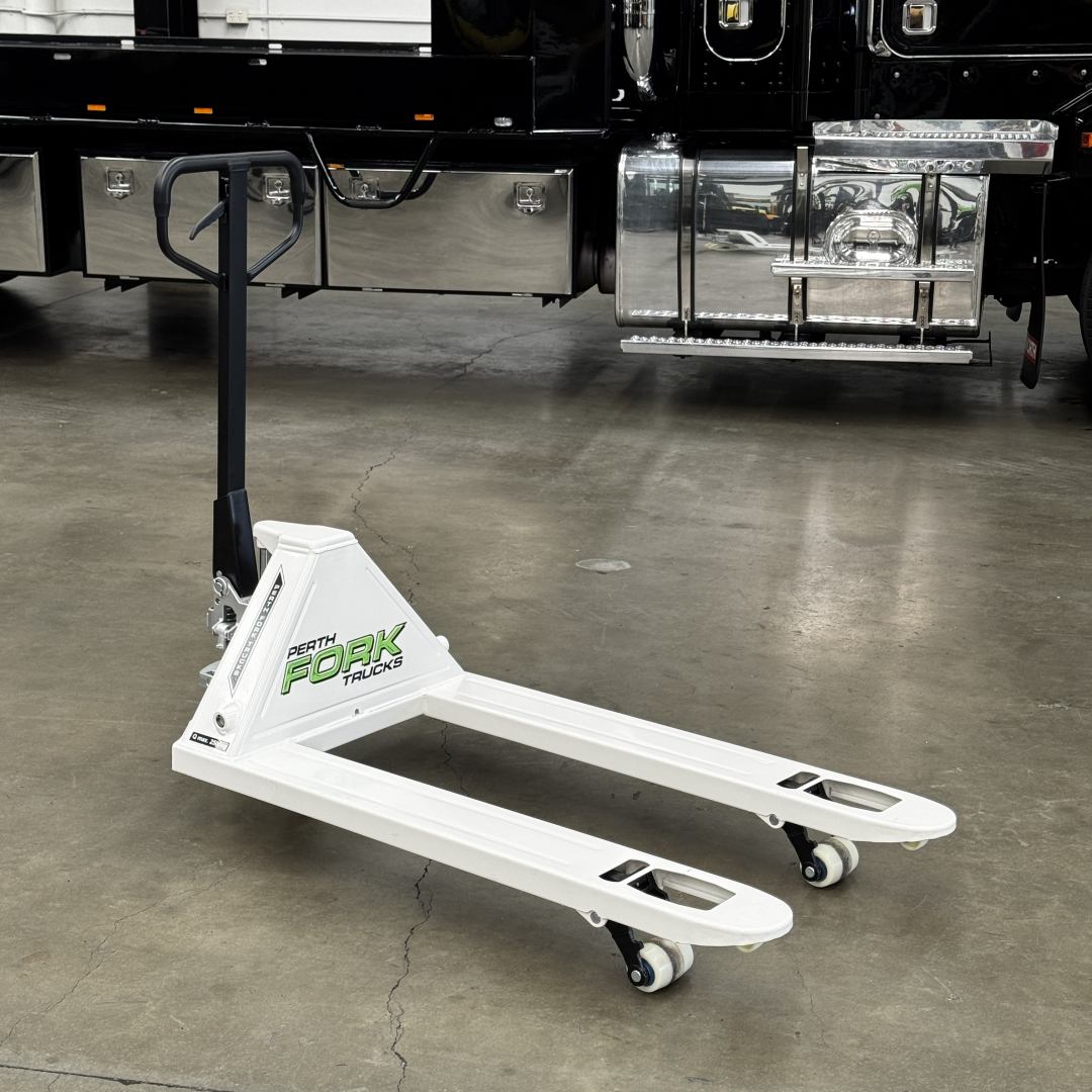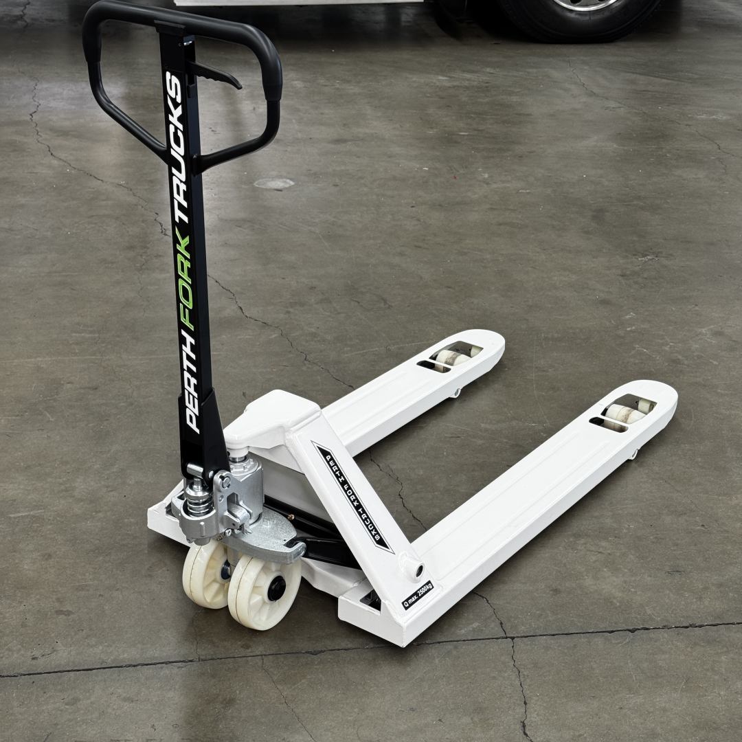 Quality manual pallet trolley rated for 2,500kg and built to last.